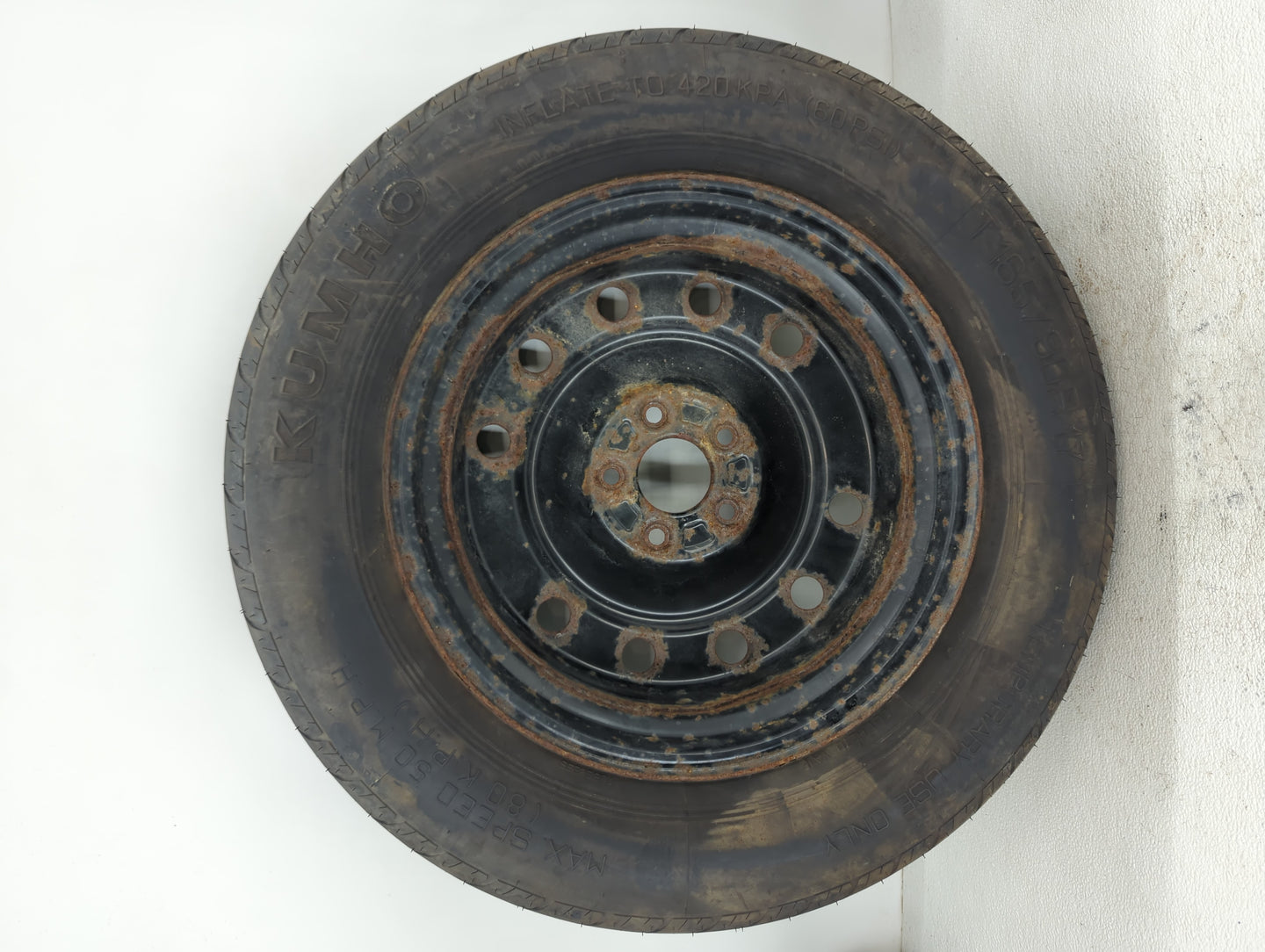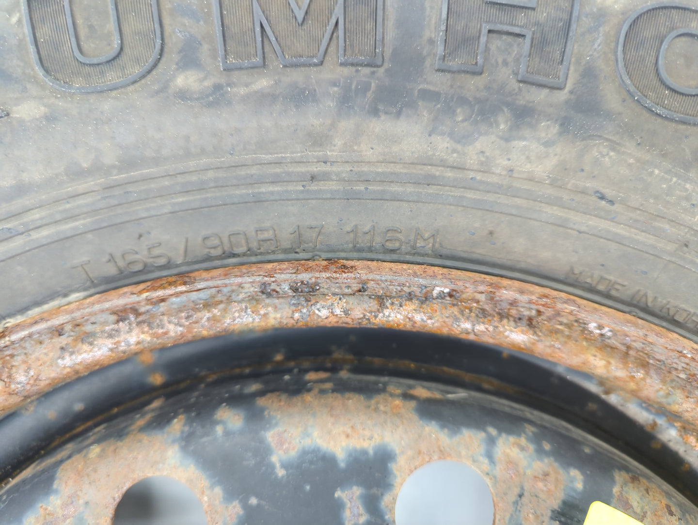 This 2007 2008 2009 2010 2011 2012 2013 2014 2015 2016 2019 2020 HYUNDAI SANTA FE Spare Donut Tire is in overall good condition.