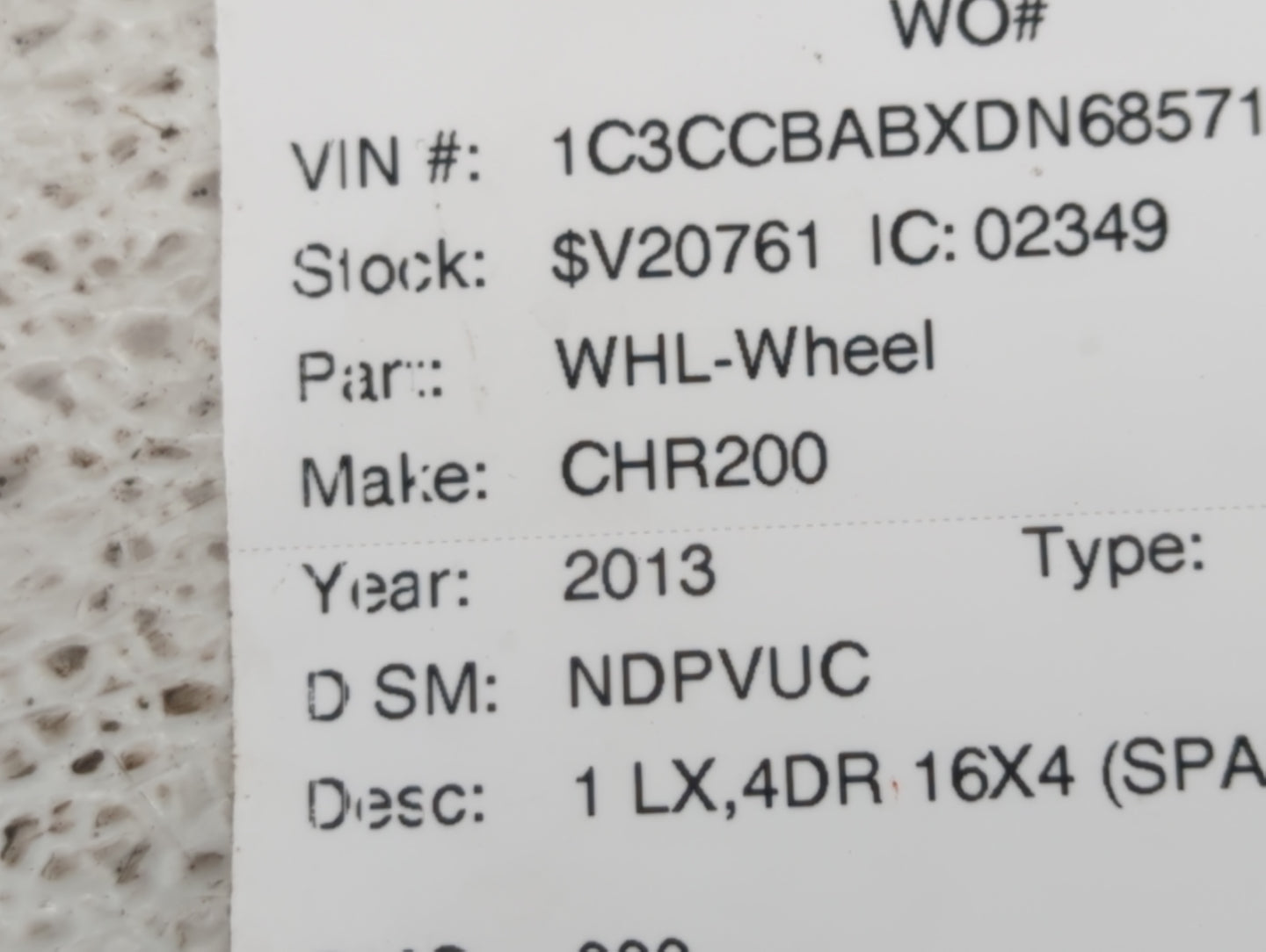 AVENGER 08-14 16x4 (spare) 2013 Dodge Avenger SE Sedan 4-Door 3.6L 3604CC 220Cu. In. V6 FLEX DOHC Naturally Aspirated