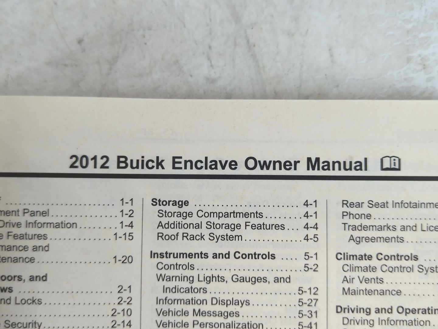 This 2012 BUICK ENCLAVE Owners Manual || Owner Manual is in overall good condition.